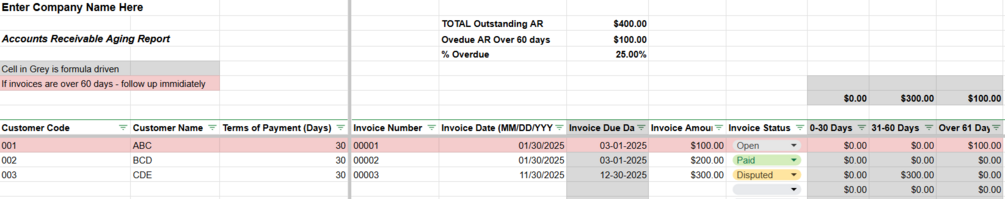 AR Aging Report - Google Sheets Template